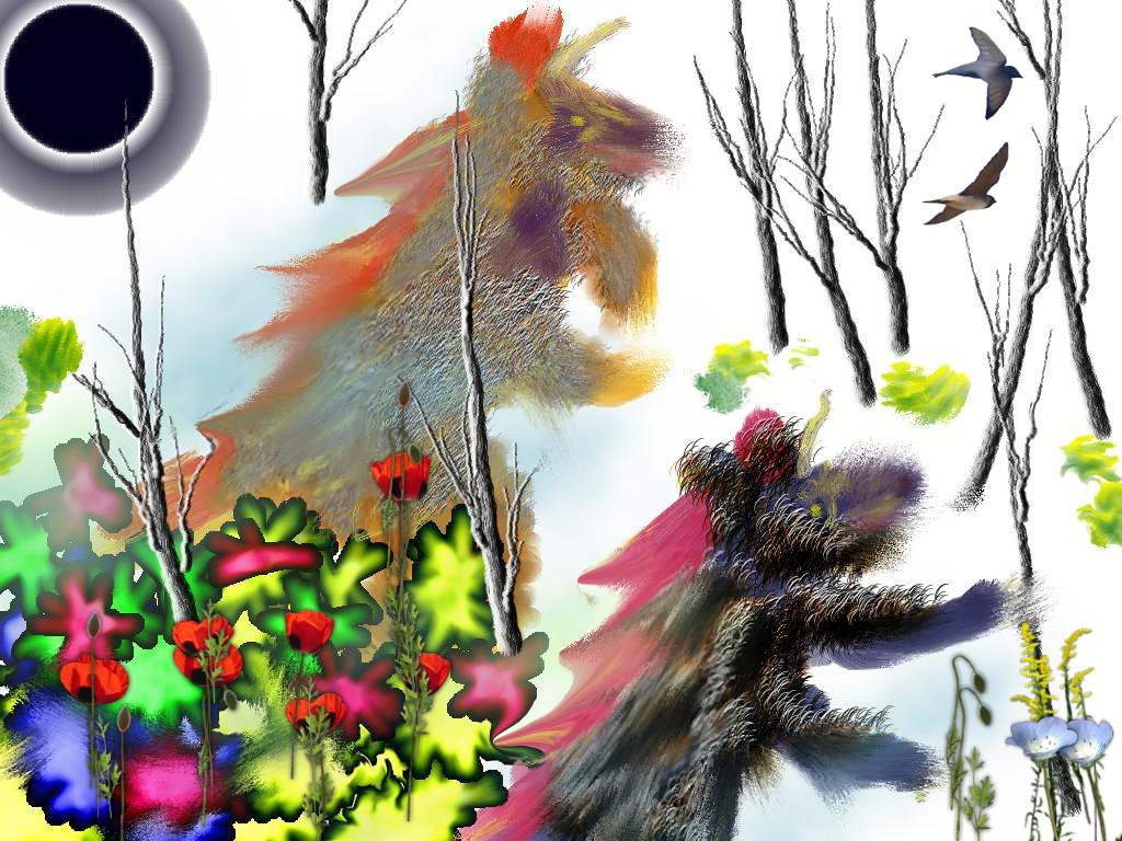 Most of the drawings in the e books and wallpaper here have been done with the mouse on MSN paint as BASE before using the other stuff to make a picture. All pictures have a basic white/black/yukky colours at first. If you cannot draw a figure try drawing in small blocks then rub them into legs and bitties. You will be amazed you can suddenly draw figures; humans is a lot easier than horses and sweet little bunnies; they seem to gallop and hop.